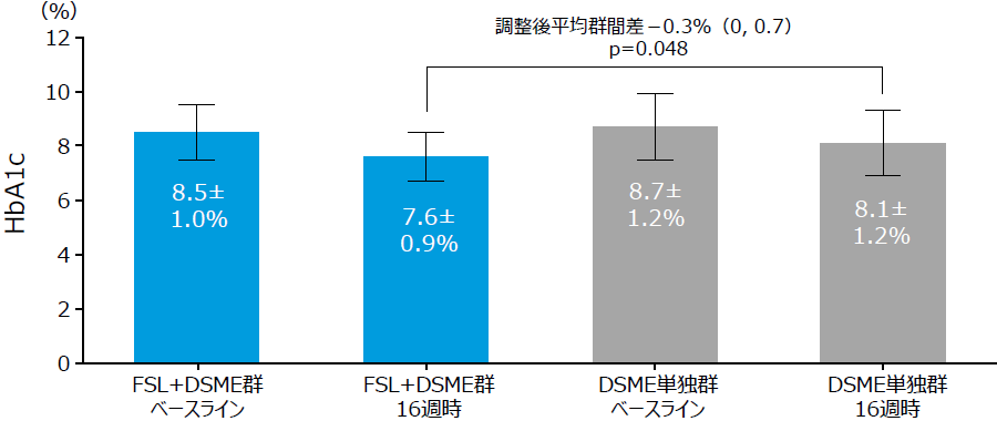 - 目的:血糖コントロール不十分な非インスリン薬物治療中の成人2型糖尿病患者に対する、FreeStyleリブレ(FSL)の有効性と患者満足度を検討。